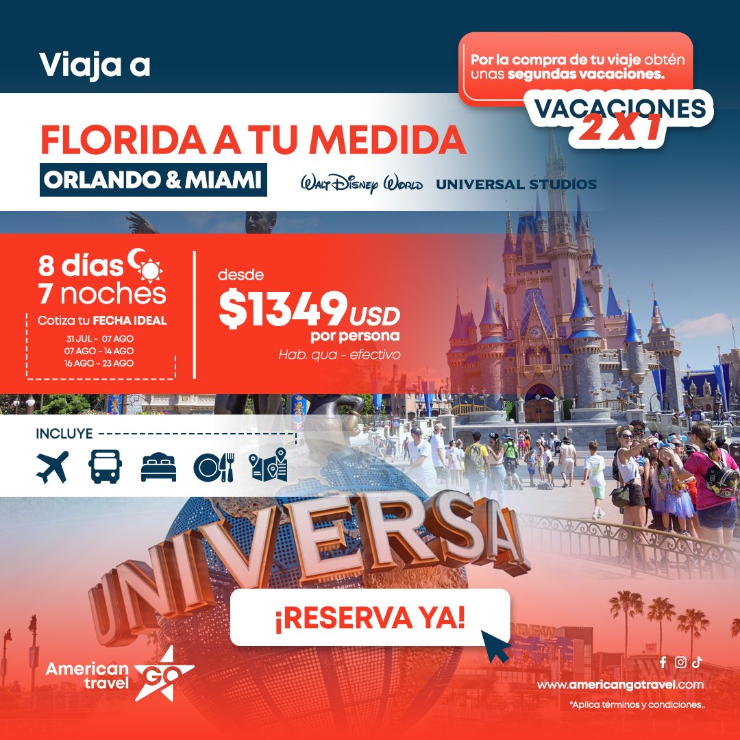 - 05 noches de alojamiento en Hotel seleccionado en Orlando